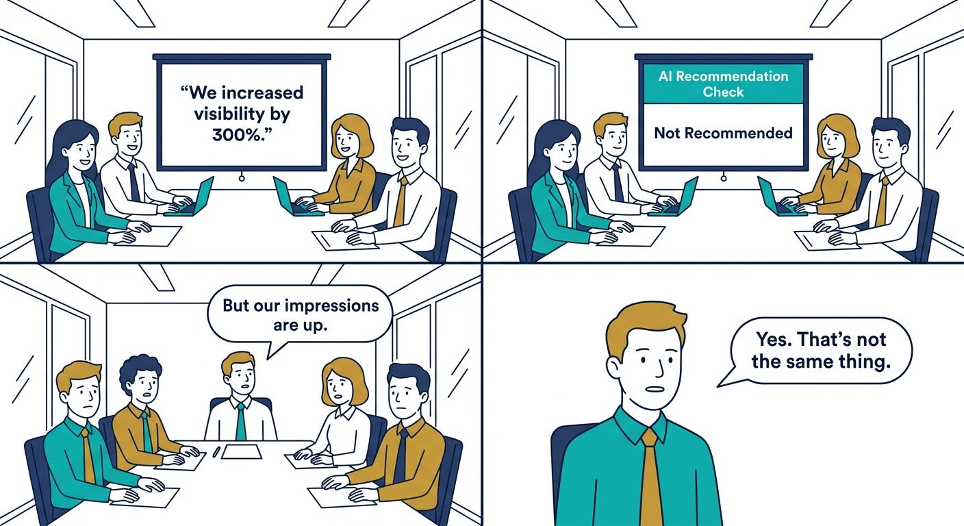 Most B2B brands are investing in visibility. Very few are asking whether their signals add up to something AI would trust enough to recommend.